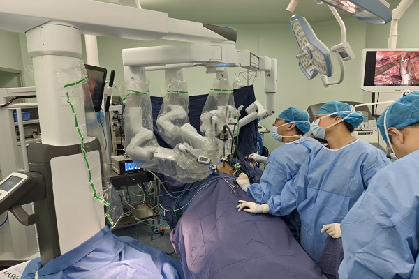 针对患者病情,孙海军带领团队仔细研究分析患者的临床资料,对患者的病情进行了全面评估与深入讨论,结合影像学资料和临床分期,精细规划个体化手术方案,并与患者及其家属充分沟通后,决定借助医院最新引进的第四代达芬奇机器人系统实施根治手术。