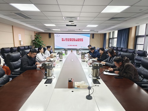 10 月 30 日上午,我院与海州区紧密型城市医联体建设座谈会在高新院区8号楼721会议室召开。海州区人民政府副区长于卉、区卫健委主任谢艳等区政府及区卫健委相关领导,我院副院长刘菁及相关职能部门负责人参加会议,共商深化紧密型医联体建设举措。