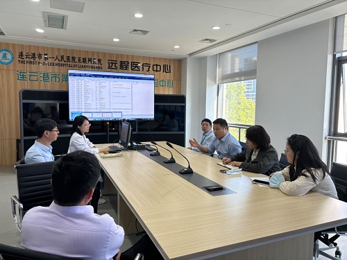 薛建祥一行首先来到我院门诊大厅医保窗口,了解医保智能监管前端审核审批功能实际运用情况,然后至互联网医院现场观摩我院医保智能监管系统事前干预、事中监管以及疑点问题反馈等操作演示,详细询问和了解我院智能监管信息系统建设情况。现场调研结束后,召开医保智能监管工作座谈会,听取全市部分医院、药店医保智能监管系统应用工作进展情况和工作建议。