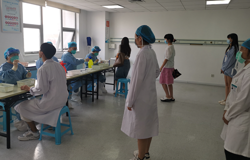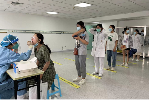 同时,因核酸检测需求量激增,克服人手紧张,学生党支部主动作为,共组织了30名学生党员担任核酸检测采样志愿者,他们连续三四个小时穿戴着医用隔离面罩、医用帽、口罩、隔离衣、医用手套参加医院的核酸检测采集工作,当好疫情群防群控的“战斗员” “保障员”,用青春和奋斗展现医学生的时代担当,彰显了新时代医学生的良好风貌。