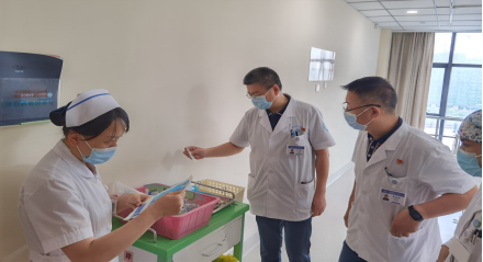 2021年8月6日上午,外二支部书记张永刚、副书记汪辉带领支部委员进行支部内各病区新冠疫情防控督查,首先对穿脱防护服、核酸采集进行现场指导,随后检查了各病区的预留隔离病房,要求加强病区预留隔离病房管理,不得占用,保障隔离病房处于备用状态。最后进入病房向患者宣教疫情防控措施,指导患者勤洗手,正确佩戴口罩。同时张书记嘱咐支部内人员,在疫情防控关键时期,要发扬党员先锋带头作用,深入贯彻落实省委“两在两同齐心抗疫”的行动要求,支部组织召开抗疫专题部署会,明确疫情防控工作责任,将“两在两同”建新功行动与深化党史学习教育、开展“我为群众办实事”实践活动相结合,及时报名参与援扬、发热门诊、志愿服务中去。