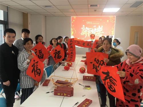 除夕这天,人们都忙得不亦乐乎,然而,甲乳外科二病区仍然有因为手术等种种原因不能回家过年的患者,为了缓解在院患者的思念之情,在周军主任和孙文雯护士长的带领下,医生、护士、患者大家一起动手贴春联、挂灯笼、贴窗花、贴福字、吹气球、折纸鹤,整个病房营造出浓浓的节日氛围,让患者即使在医院也能感受到家的温暖,感受到浓浓的年味。