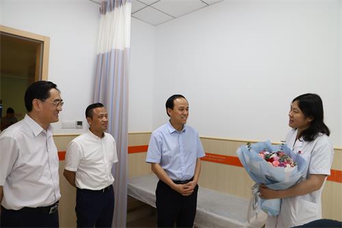 8月19日下午,值此第二个“中国医师节”来临之际,连云港市副市长黄远征代表市委市政府莅临我院对奋战在临床一线的医务人员进行慰问,市卫健委党委书记、主任周伟,院长李爱民、副院长胡蓉等领导陪同慰问。