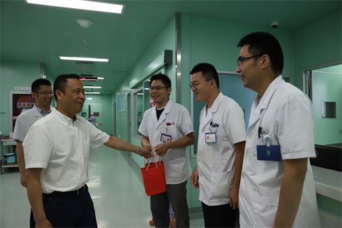 8月19日上午,在2019年中国医师节来临之际,院长李爱民、副院长、工会主席胡蓉等院领导和相关职能部门负责人走进临床科室,代表医院向长期奋战在一线的医生们送上亲切的问候及节日的祝福。