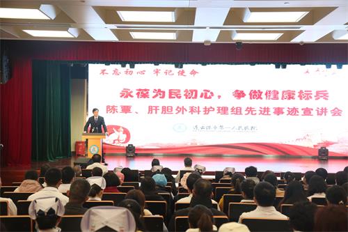 11月21日,我院在高新院区多功能厅举办了市卫健委主题教育身边典型——陈覃、肝胆外科护理组先进事迹宣讲会,副院长李家树、李明星出席会议,全体党员、干部、后备干部、团员等500余人到现场集中学习。李家树致辞。