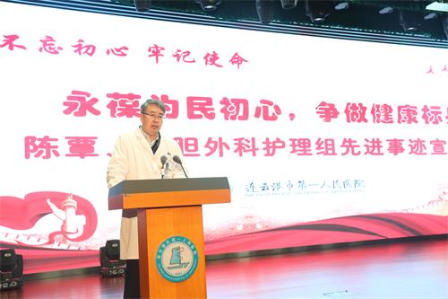 院长李家树致辞号召全院广大党员、干部、团员,要以身边典型为榜样,进一步弘扬新时代医疗卫生精神,认真践行社会主义核心价值观,坚定理想信念,爱岗敬业,甘于奉献,让先锋标杆和崇高精神在连一医生根、开花、结果,用自己的实际行动,为港城人民健康保驾护航,为医院高质发展做出更大的贡献!