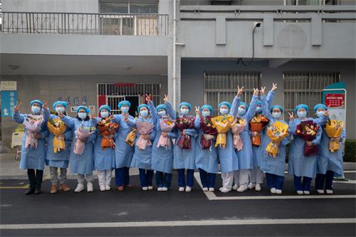 9:00,在1号楼门外,院领导等在门口,迎接第一批进入隔离病房的勇士,为他们献上鲜花,祝贺他们圆满完成任务,平安凯旋归来。从今天起,他们将在医院安排的集中区,进行为期2周的隔离观察。
