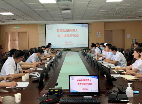 7月8日上午,我院召开2020年职能处室负责人年中述职评议会。院党委书记李小民、党委副书记王乐平、副院长张海林、政协委员、人大代表、支部书记代表作为此次述职评议会评委。会议由副院长张海林主持。各职能处室负责人分别从政治建设、作风建设、工作业绩、廉洁自律等方面进行了述职。