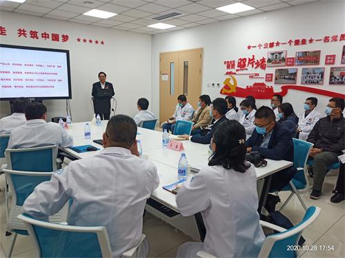 10月28日,市卫健委党委书记、主任周伟到影像支部上专题党课,院纪委书记马岳、高新党总支副书记孙增先及影像党支部全体党员聆听此次党课。