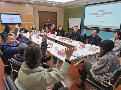 近日,九三学社连云港市第一人民医院支社在市一院高新院区9号楼4楼统战会议室召开了换届工作会议。九三学社市委会驻会副主委陈晓平等出席会议。中共连云港市第一人民医院党委宣传统战处处长江荣应邀出席会议。10余名支社社员参加了会议。会议选举产生了新一届九三学社一院支社委员。