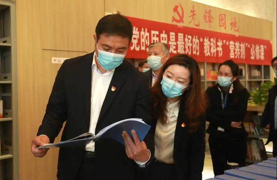 调研中,杨新忠一行还先后查看了连一医举办的“奋斗百年路 启航新征程”百年党史图片展、团员青年党史学习情况、医院多媒体演播室举办的“白衣天使讲党史”宣讲活动。最后,调研组到图书馆党建先锋学习园地,查看了医院党史学习教育相关台账。
