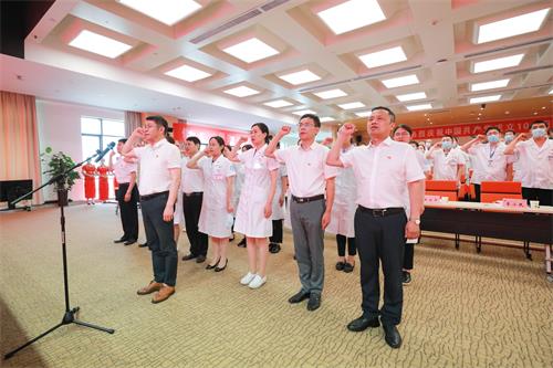 随后,“光荣在党50年”纪念章获得者代表杨廷仁同志发言,从党对新中国、医院、个人成长三个方面畅谈党的丰功伟绩,感念党的关怀培养;建院70周年以来获市级及以上“优秀共产党员、优秀党务工作者”荣誉奖章获得者代表、产科党支部书记陆薇分享了她的党员初心;“白衣天使讲党史”获奖者、影像科李娅讲述了《一根竹竿行千里 一颗红心鱼水情》感人的党史故事;优秀共产党员代表谢永鹏、先进基层党组织代表孙军分别发言。