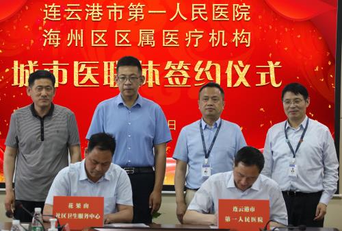 签约仪式上,施辉与海州区城市医联体医疗机构、项目合作医疗机构负责人分别签订合作协议书。