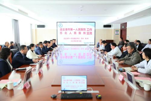 为对标找差寻路径,推进医院高质量发展,2月16日上午,在院党委书记李爱民,党委副书记、院长施辉带领下,院领导胡蓉、李明星、王仲及部分职能部门负责人一行14人赴苏北人民医院交流学习。苏北人民医院党委书记徐道亮、院长束余声及领导班子全体成员及相关部门负责人参加活动。