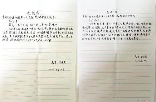 近日,呼吸与危重症医学科三病区出现了暖心一幕:患者马奶奶的家属送来了两封手写感谢信。纸短情长,字里行间满溢着对医护人员深深的感激。