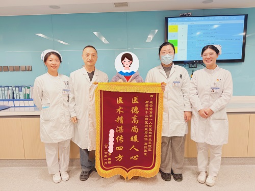 近日,开发区院区十二病区上演了温馨一幕。肠癌患者及家属将一面写有“医德高尚暖人心,医术精湛传四方”的锦旗,亲手送到中西医结合肿瘤科刘政宏主任团队手中,以此表达三年来的深切感激。