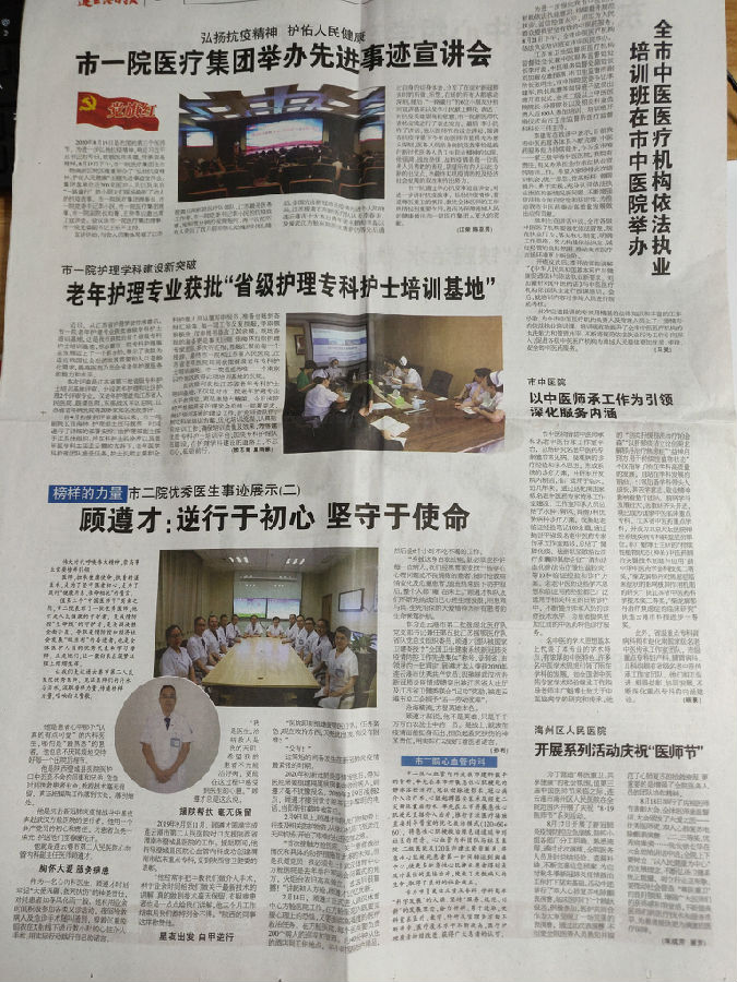 《连云港日报》2020年8月25日报道:市一院医疗集团举办先进事迹宣讲会